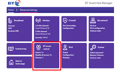 With BT access controls you can manage how your device accesses the internet during certain times of the day. You'll find it in Hub Manager. To find out how to use it, just click on the......