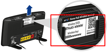 - Choose your Hub from the list (for example, BTHub5-WWWW) and enter the Wireless SSID and Wireless key (password) from the settings card